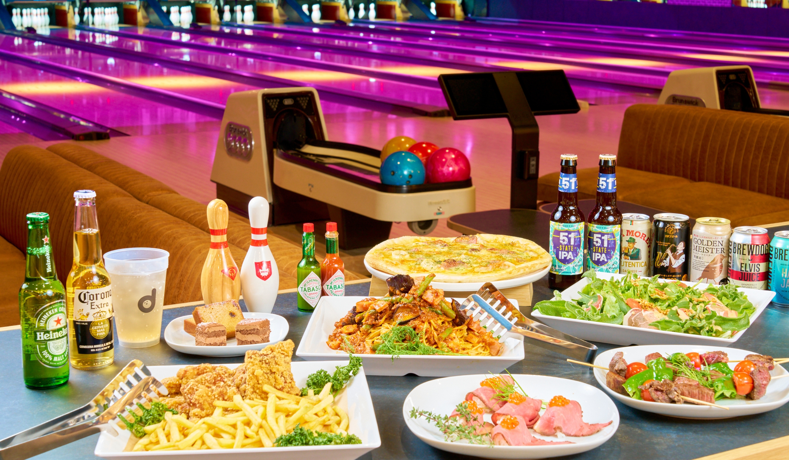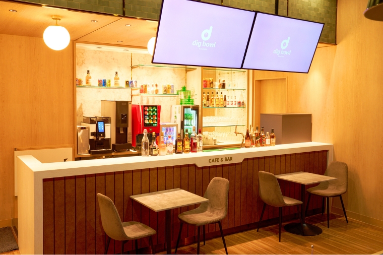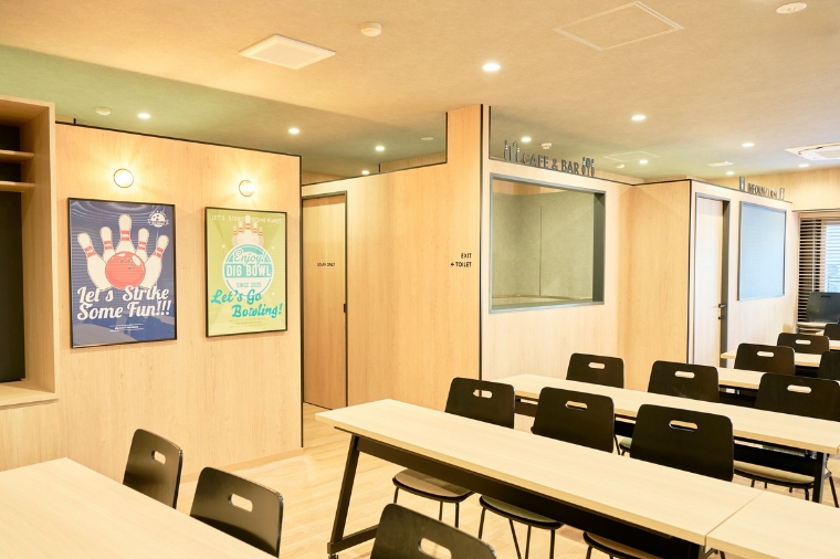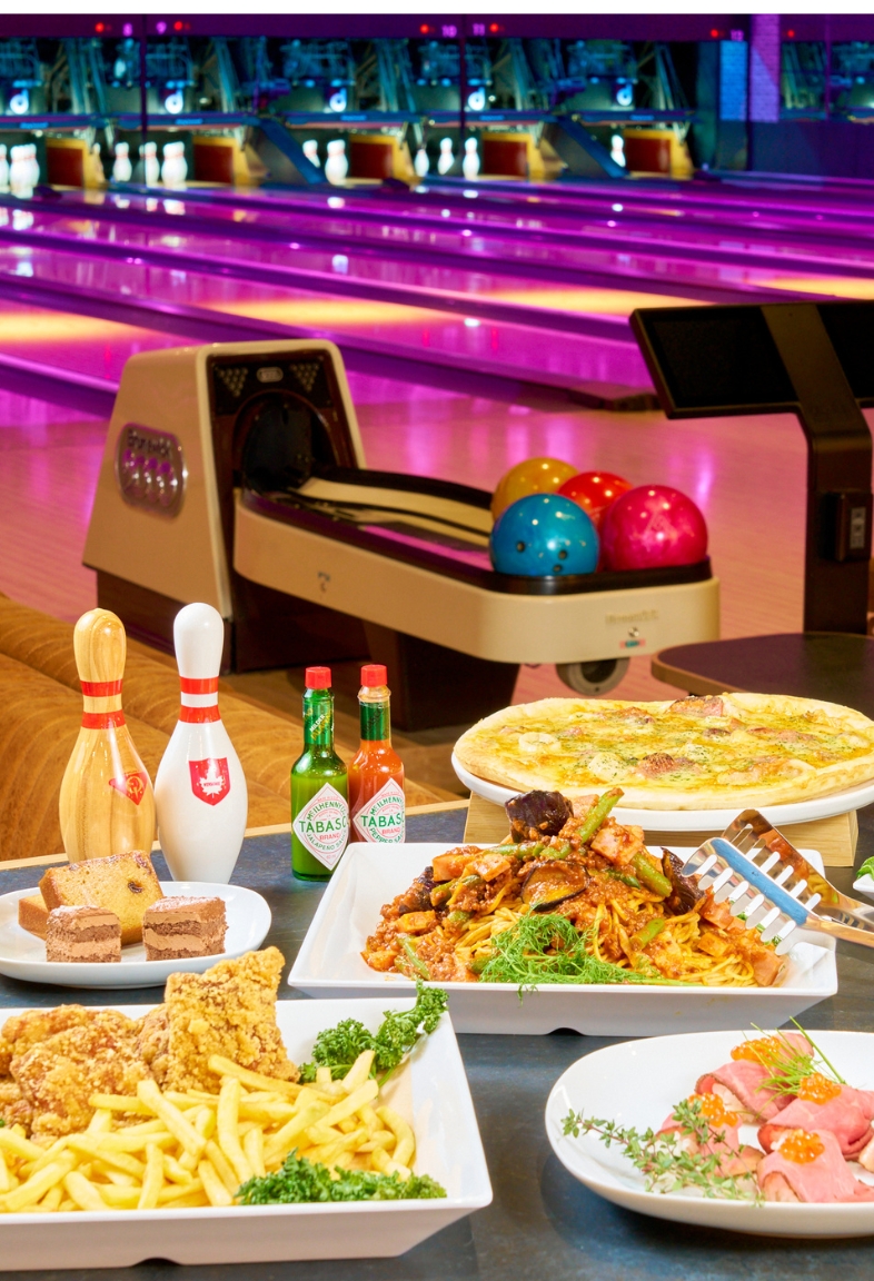 カフェバーを併設。ボウリングを楽しみながら、軽食や多彩なドリンクを味わえます。