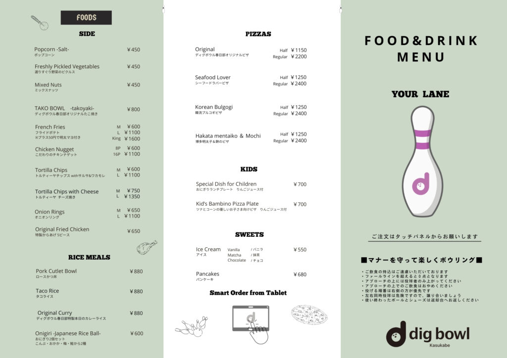 ドリンクもフードもボウリングと一緒に!