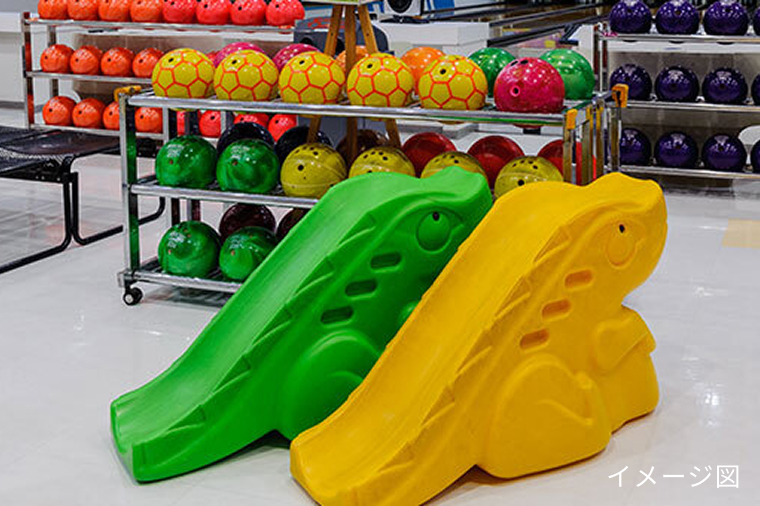 小さなお子さまでもボールを転がして楽しめる、投球補助台と軽量ボールもご用意しています。
